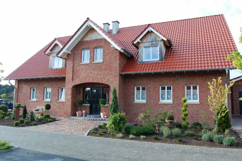 - Die Giebel wurden mit Gesimse und Pfeilervorlagen versehen